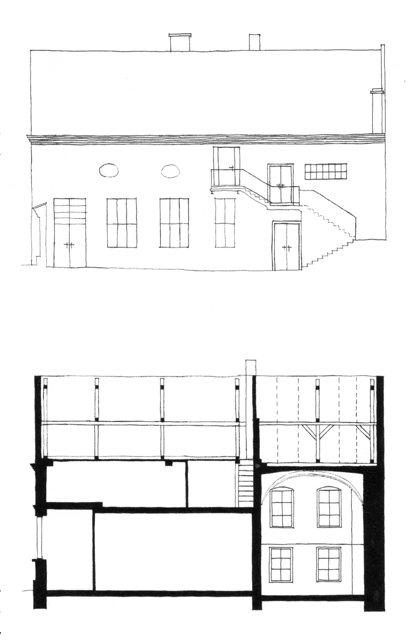 View and cross-section of the Polish Temple. Drawing © Jaroslav Klenovský