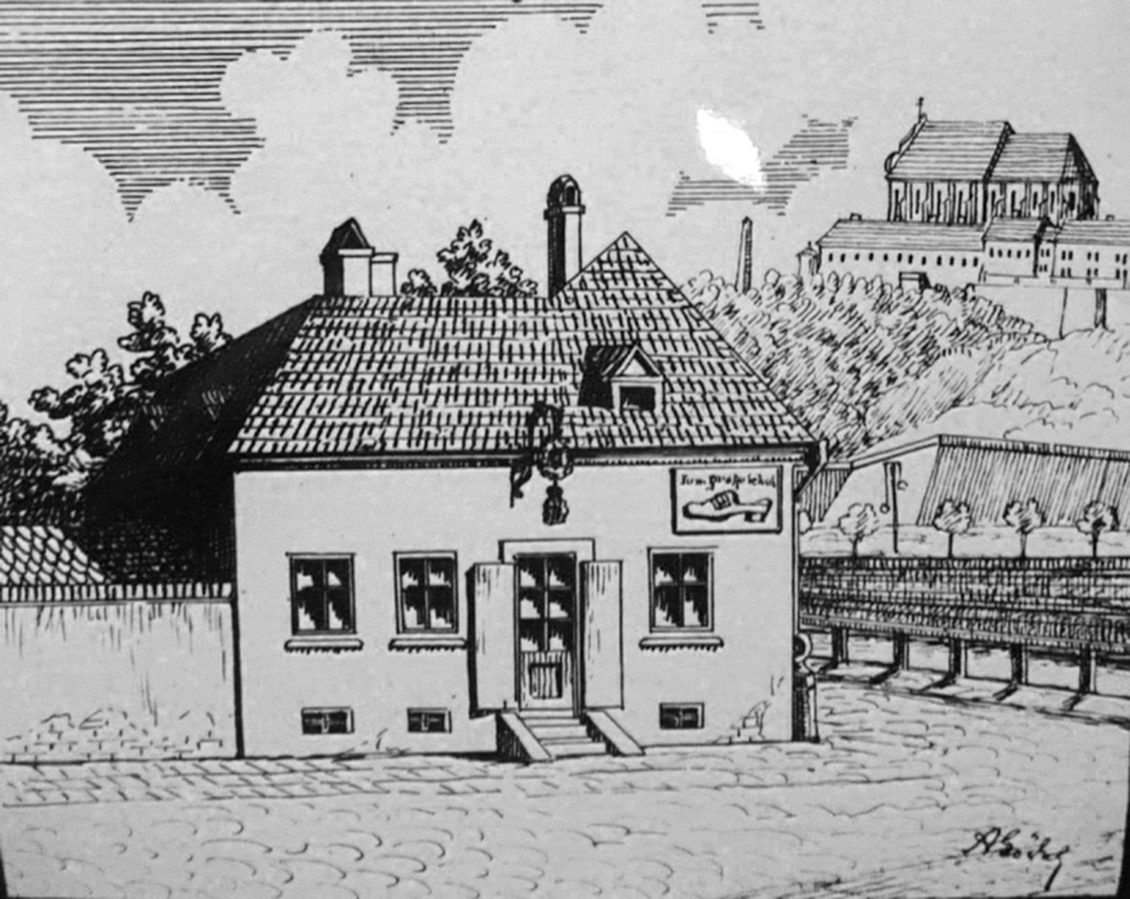 Dům U Velkého střevíce (reprofoto: K. k. Priv. Militär- und Feintuchfabrik J. H. Offermann in Brünn)