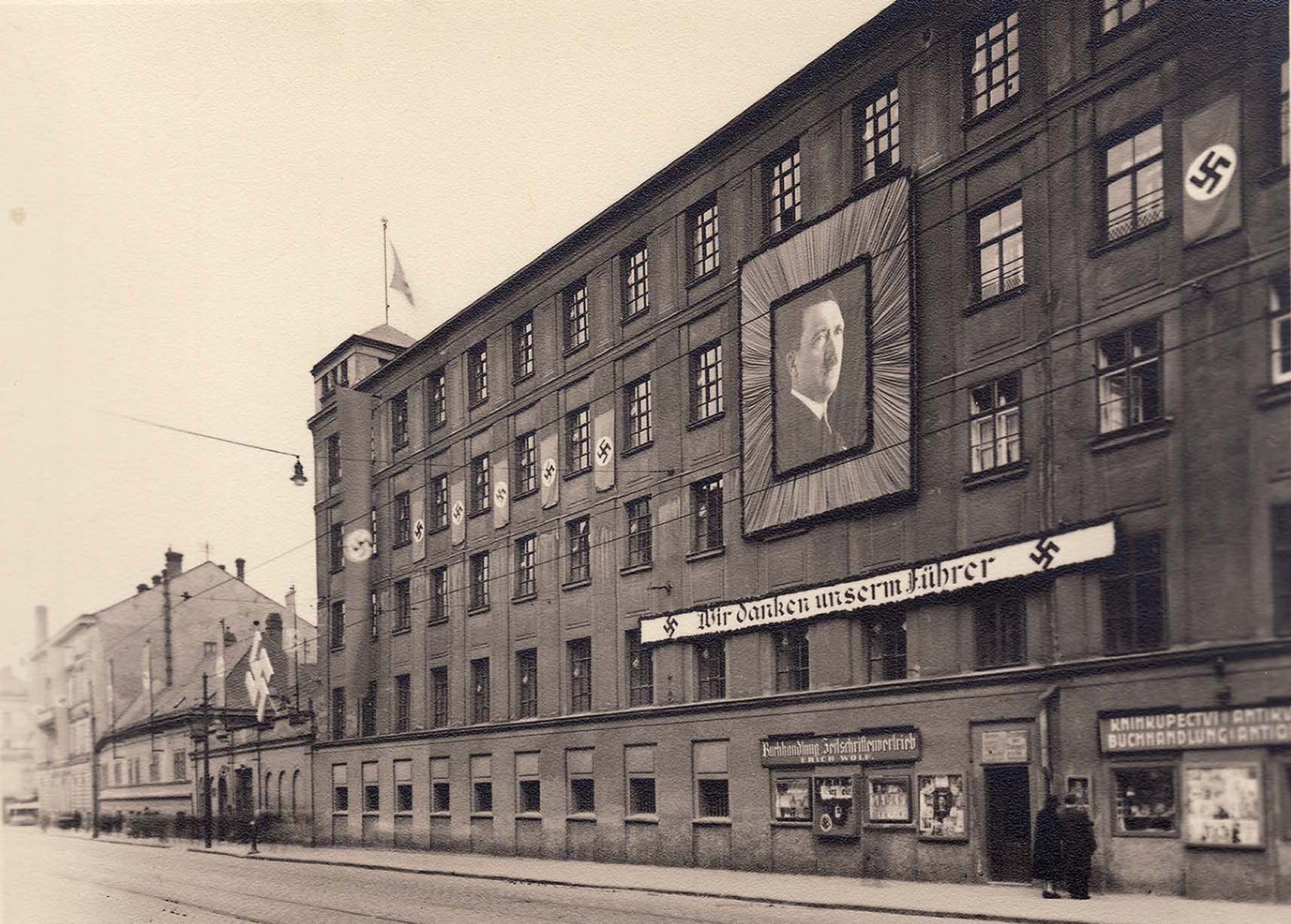 Továrna Gebrüder Schoeller vyzdobená u příležitosti vzniku protektorátu, březen 1939 (foto: AMB)